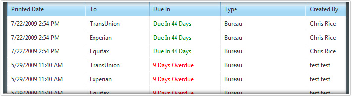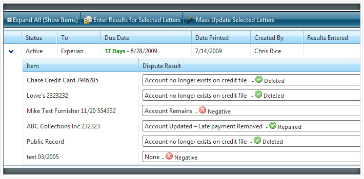 System shows when results are due back, when follow-up disputes should be created, when letters were mailed out, and more