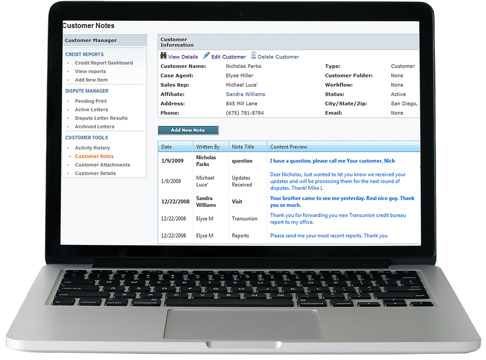 Your no longer have to worry about locating the customer’s information, credit reports, dispute letters, what’s been disputed, dispute letter results, notes, attachments, or any other information. You can now track and view the customer’s credit repair history in one place.